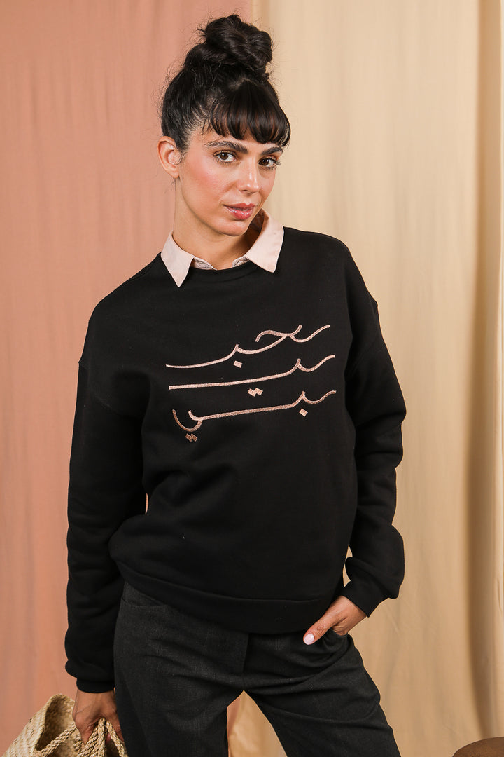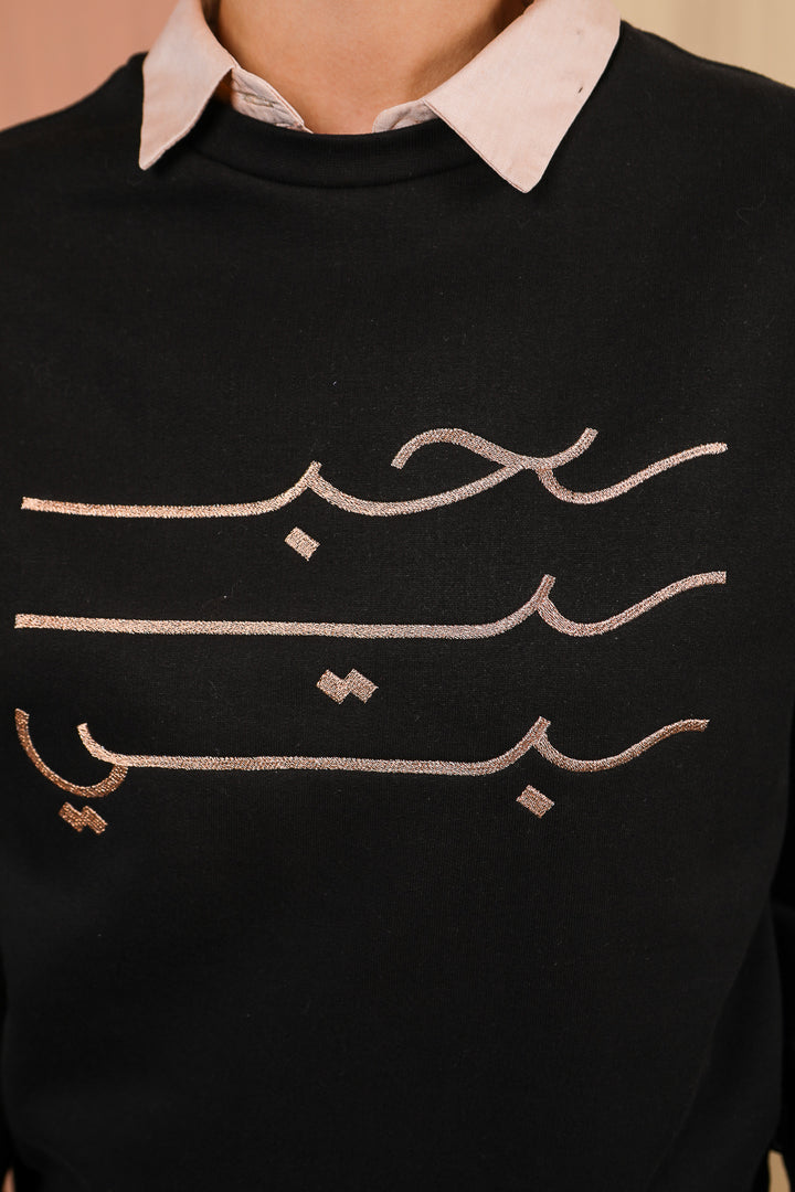 - broderie 'Habibi' ('Mon amour') en calligraphie arabe sur le devant, en rose brillant