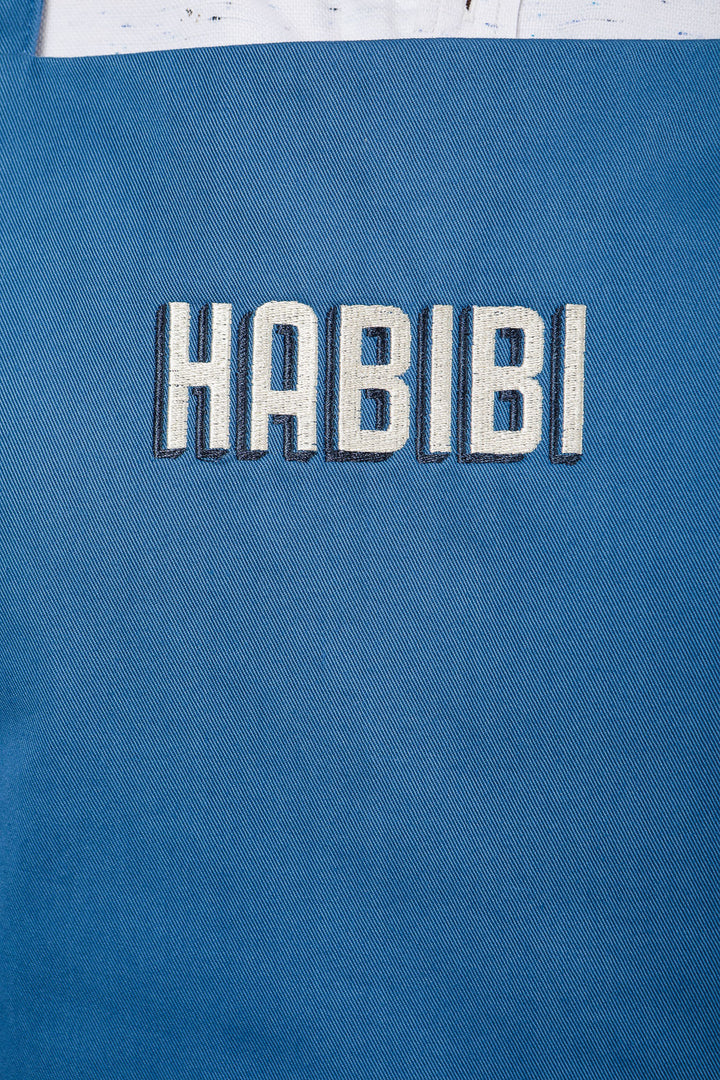 - Broderie 'Habibi' sur le devant, pour un message tendre et complice