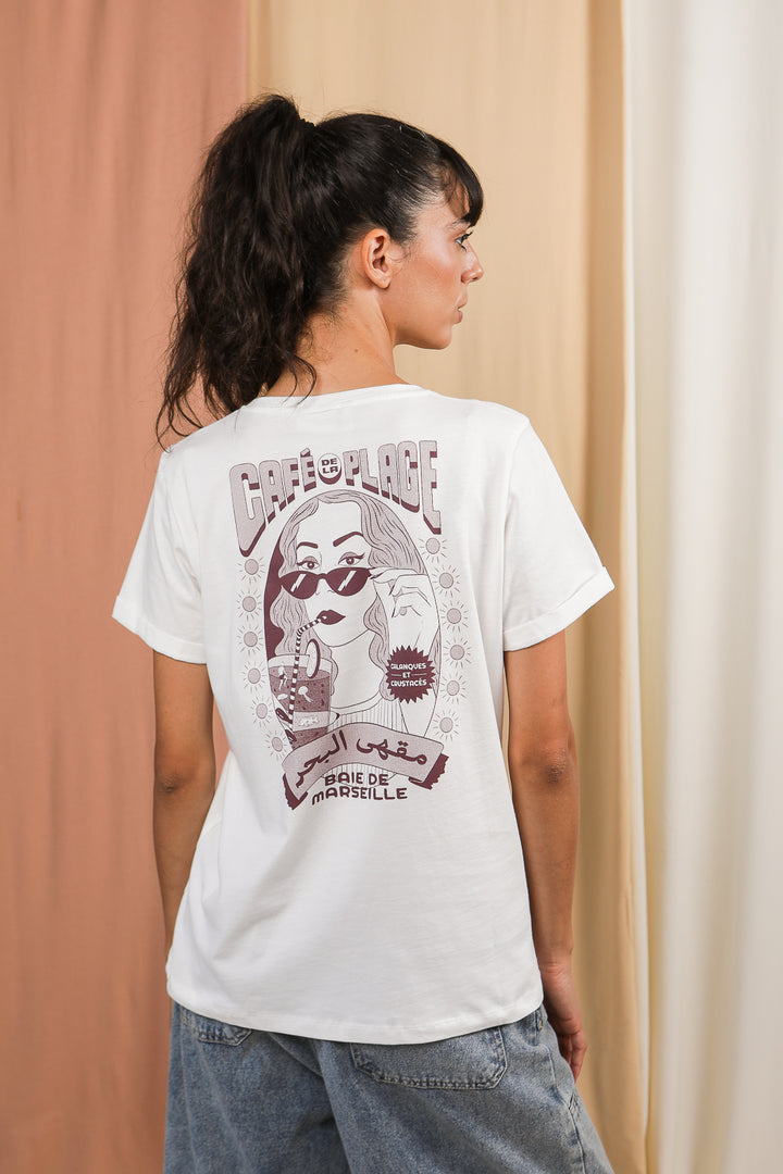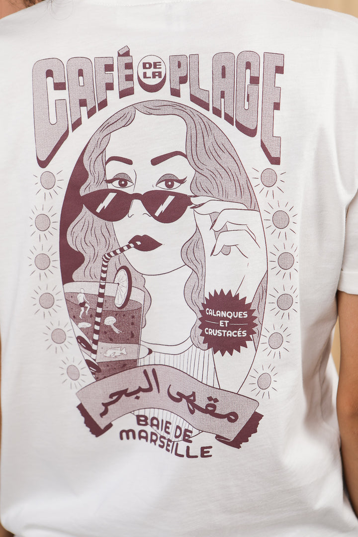 - Illustration exclusive 'Café de la Plage' au dos couleur prune