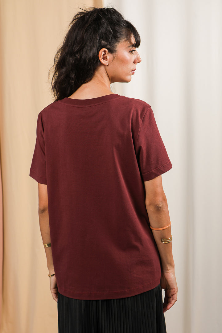 - Coupe droite classique, de couleur prune
