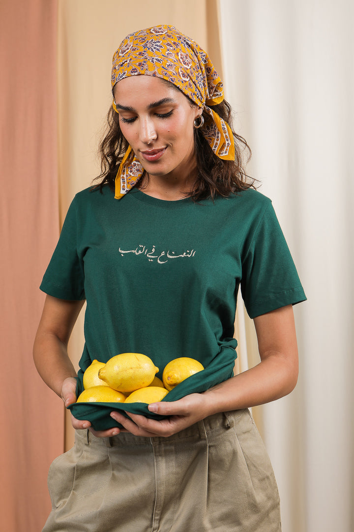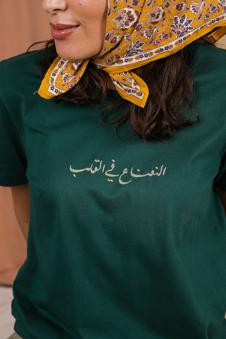 - Broderie 'La menthe est dans le cœur' en arabe, pour un détail délicat et poétique sur le devant.